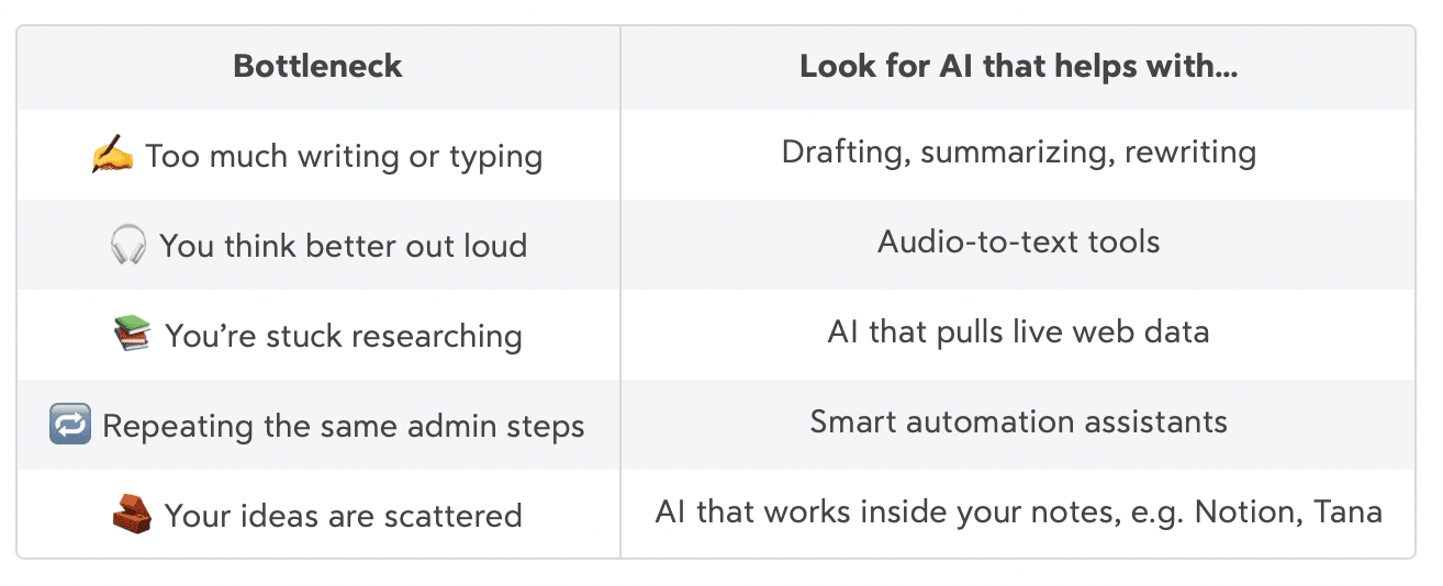 “What’s one tiny annoying thing I do repeatedly…that an AI might be able to help with?”